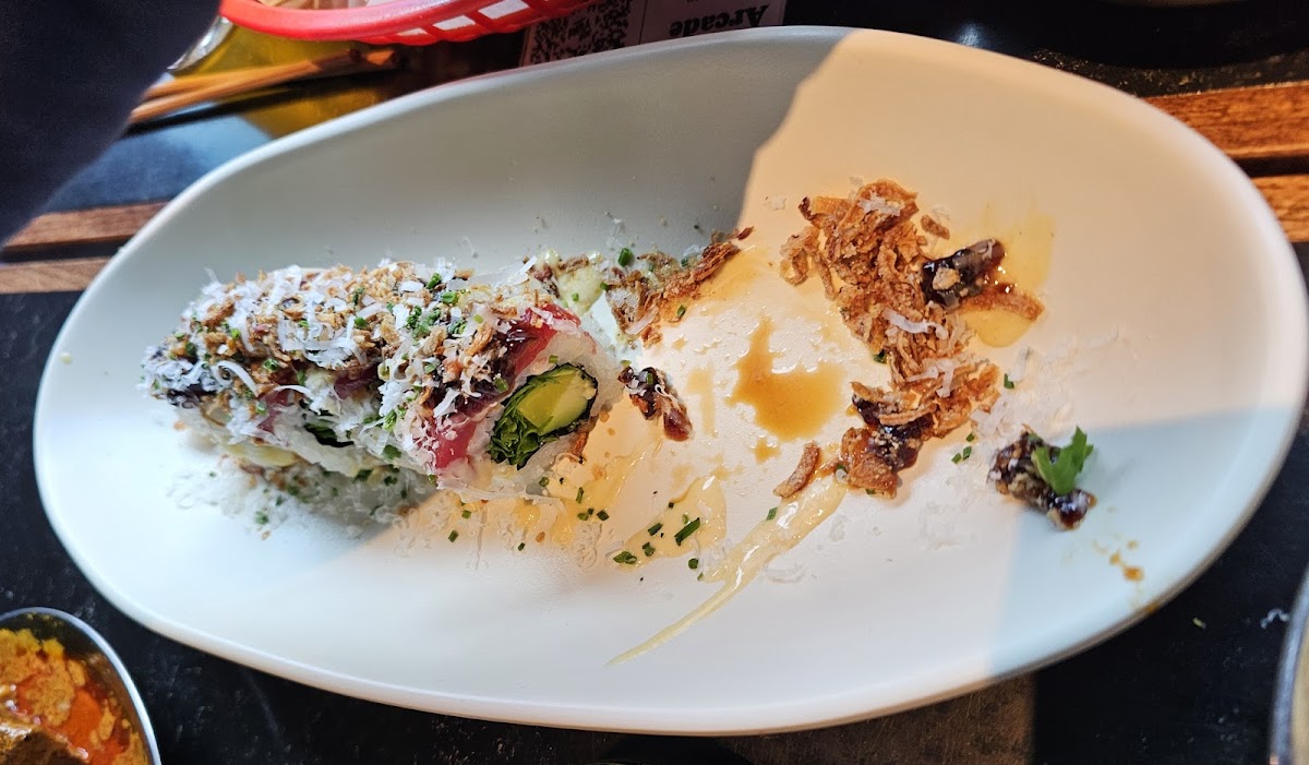 One of the standout features of Arcade Food Hall is its variety of popular dishes. Sushi enthusiasts can enjoy a fresh California Roll or indulge in the flavorful Tapas. For those craving something hearty, the Iberian Katsu Sando from Tou by Tata Eatery offers a unique twist on the classic sandwich. The Smash Burger is perfect for anyone seeking comfort food, while the Hero BBQ Chicken Wings and Lamb Birria Quesadilla offer a more adventurous bite. Vegetarian and vegan options like Masala Tater Tots and Shawarma Fries ensure that everyone is catered for, regardless of dietary preferences.